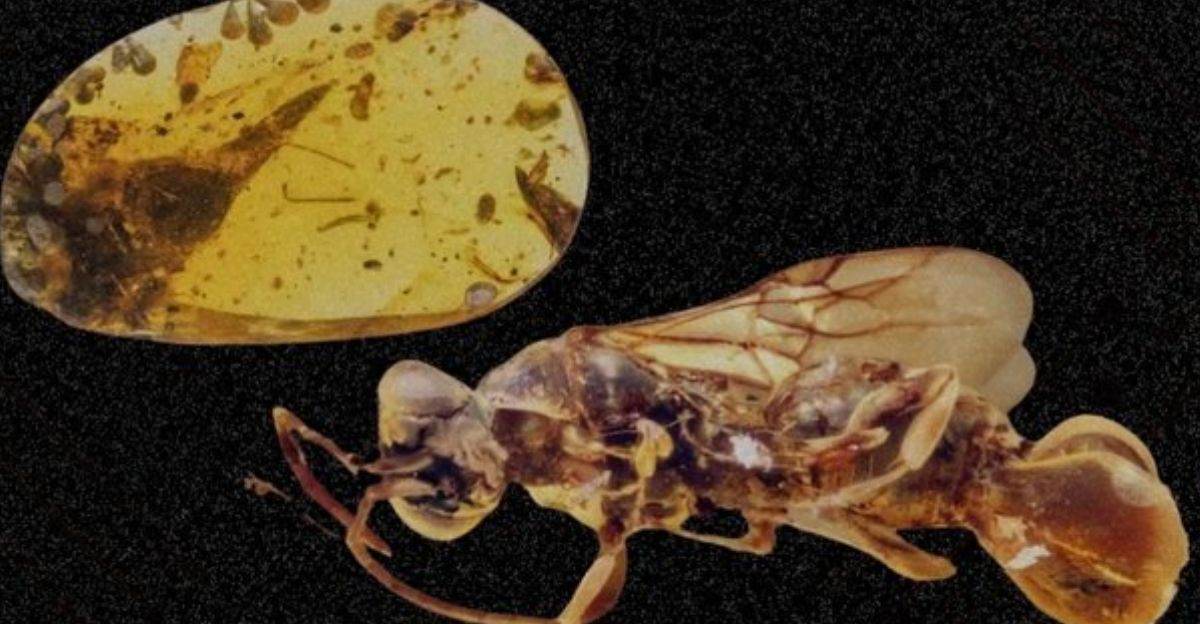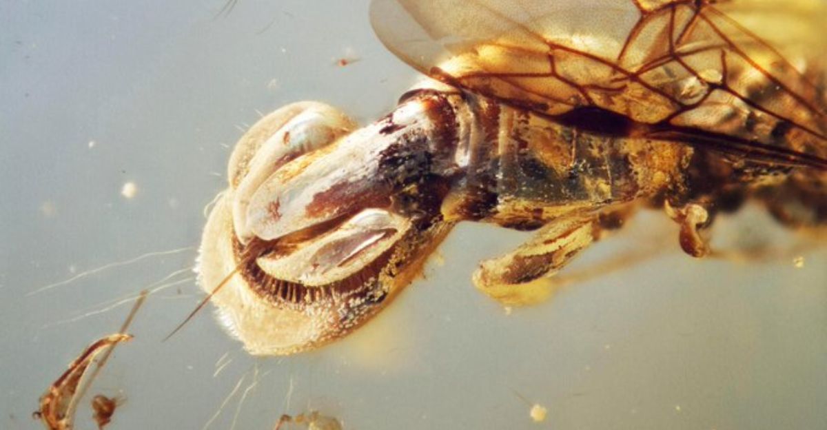 Scientists believe this flytrap-like device wasn’t ornamental—it had a deadly purpose. Evidence suggests the wasp used it to catch insect hosts, snapping shut its segmented abdomen to immobilize them.