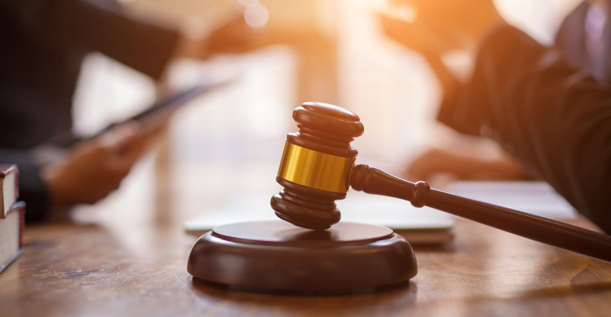 Close-up of a wooden gavel on a desk symbolizing justice and legal authority