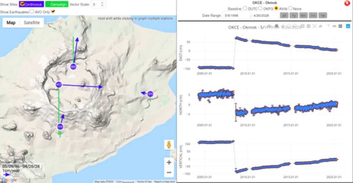Los científicos usan sensores GPS y satélites para buscar cambios en el terreno cerca de los volcanes, un proceso llamado monitoreo de deformación.